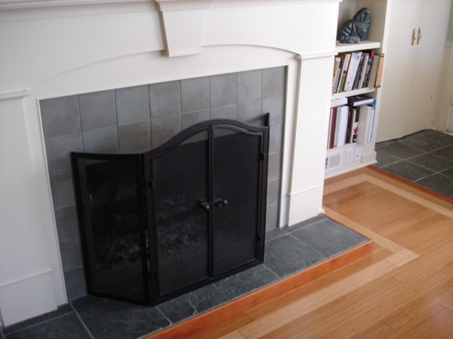 The next to be changed was the hearth, which was brought out to meet current code requirements and covered with natural slate tile, then wrapped in a cherry trim.