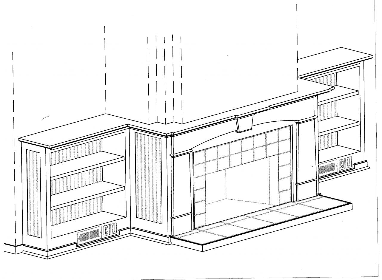 When this fireplace was built (the 50's) it was done in standard red brick, floor to ceiling. At some point a mantel was added by screwing on a dressed-up piece of 2 x 4. The hearth was only one brick deep, a safety concern, even when it was built. There were existing bookcases on either side of the fireplace which had been constructed from 2 x 10's. Clearly a little upgrading was in order.