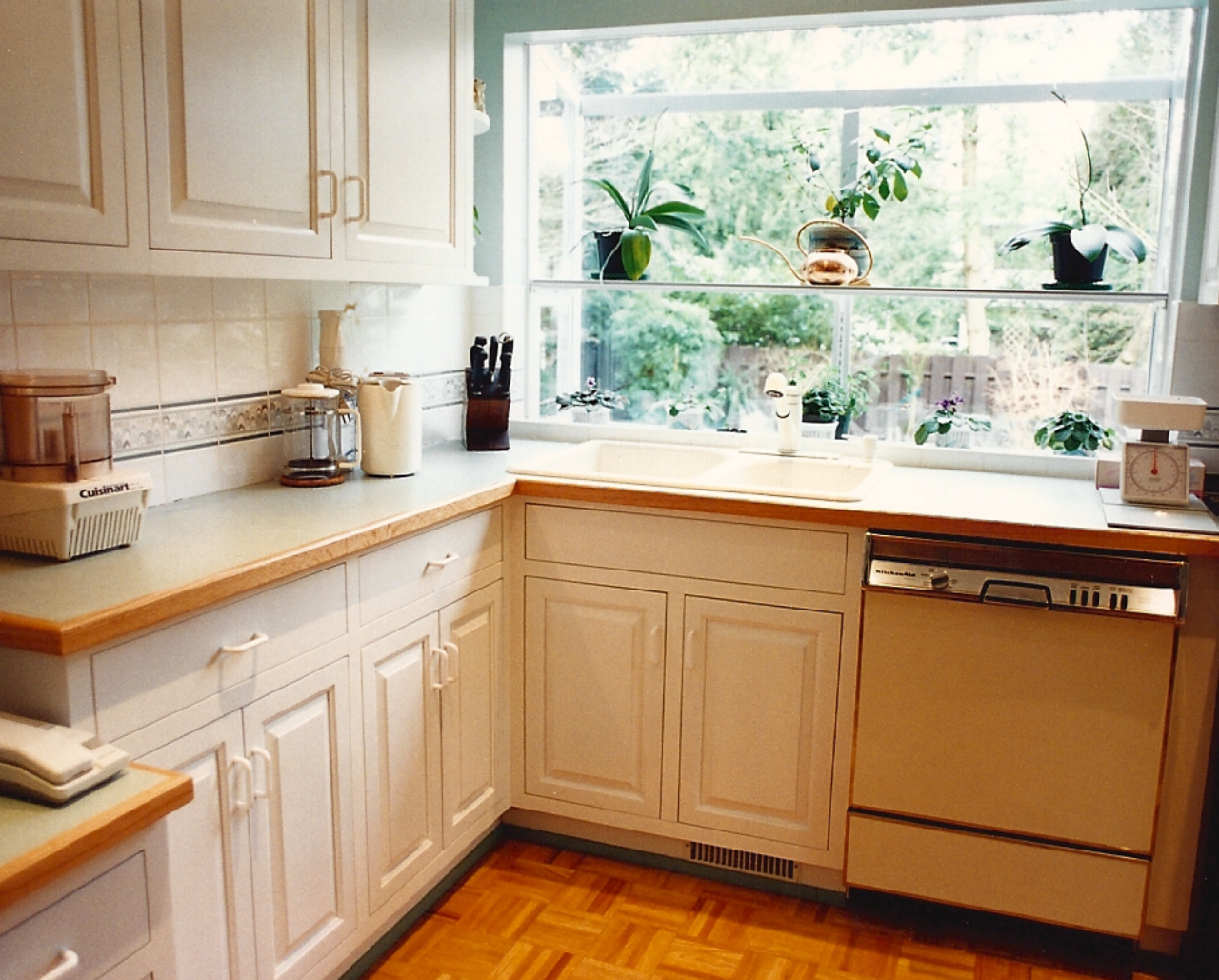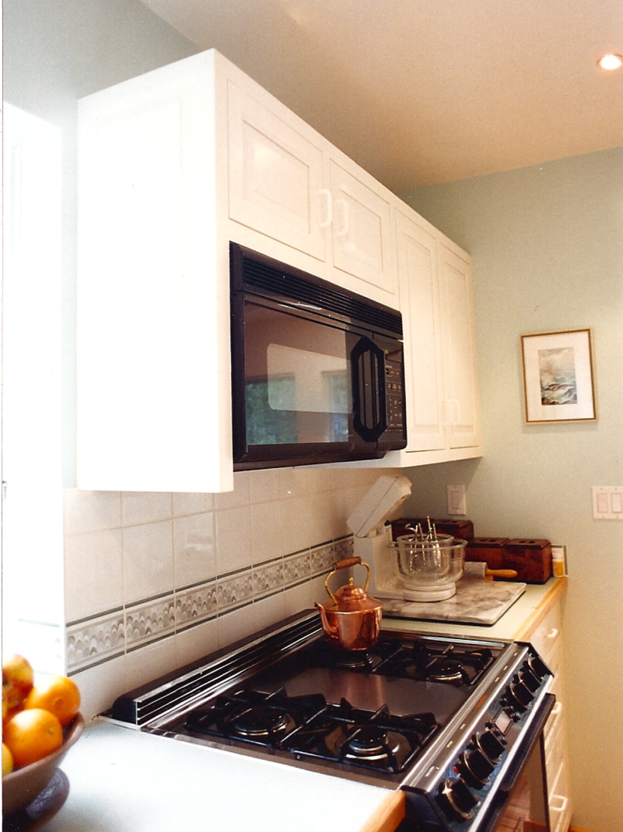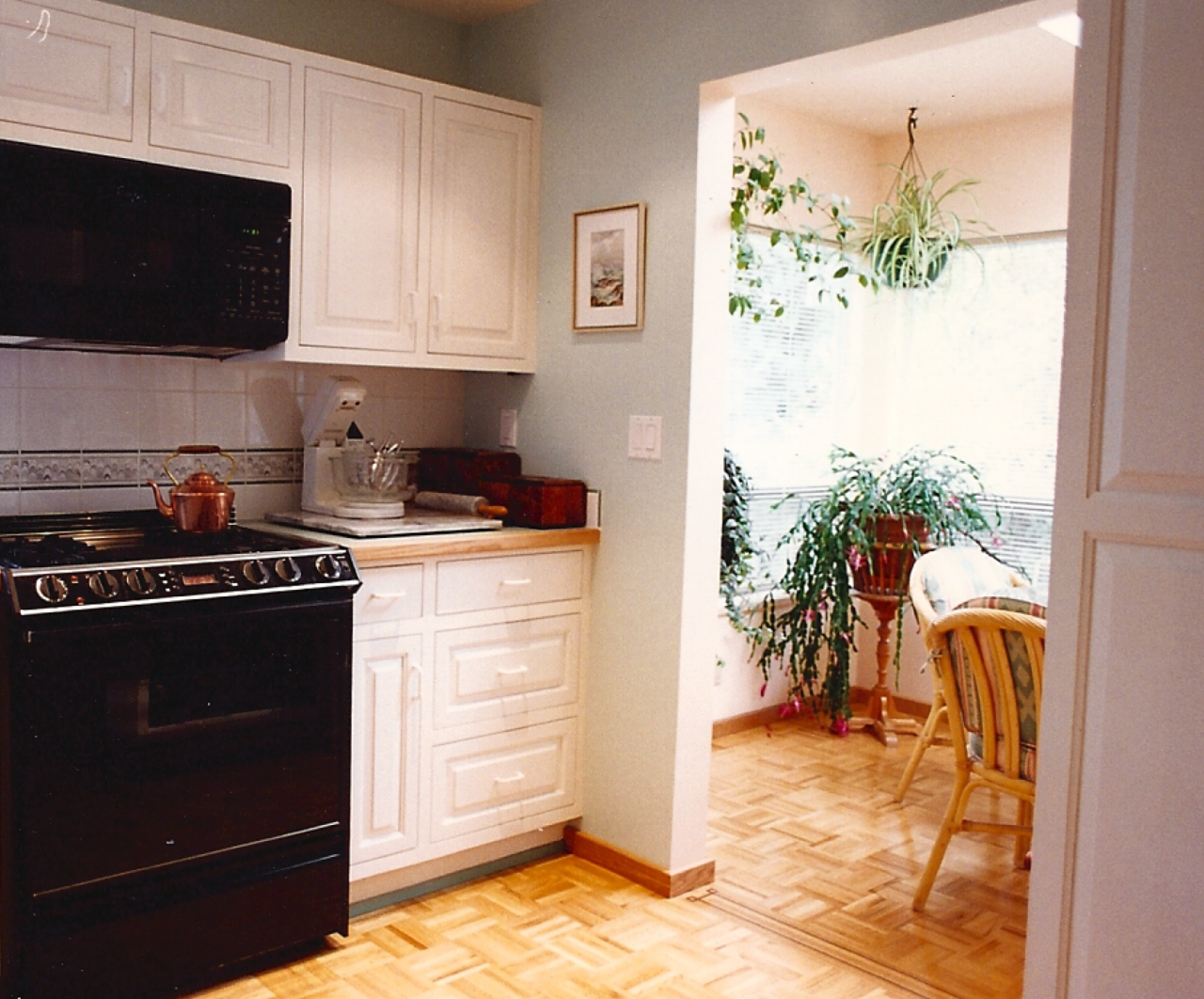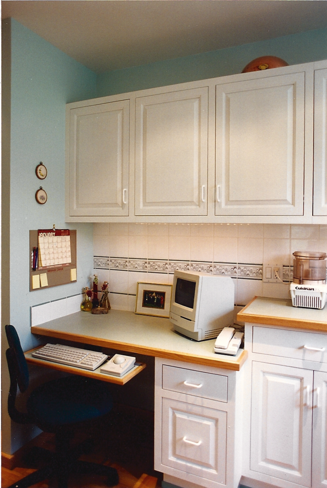 For the second, you start with a blank piece of paper and say, I wonder how it would work if we moved this over there and that over here and opened up this wall here and...... The second kitchen shown (photos 6-11), was the latter type. Where the desk is, was the refrigerator. Where the sink and dishwasher are was a kitchen table. The stove stayed put. The sink was where the walkway into the breakfast room is, which was where the pantry now is, and so on. In this case we transformed a small dark kitchen from the 60's into a bright, modern, functional kitchen which still looks fresh after 15 years.